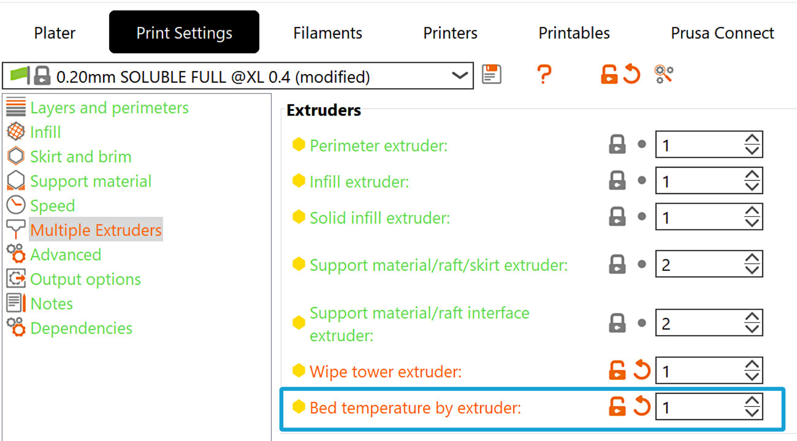 PrusaSlicer shows a warning in case the heatbed temperatures significantly differ.