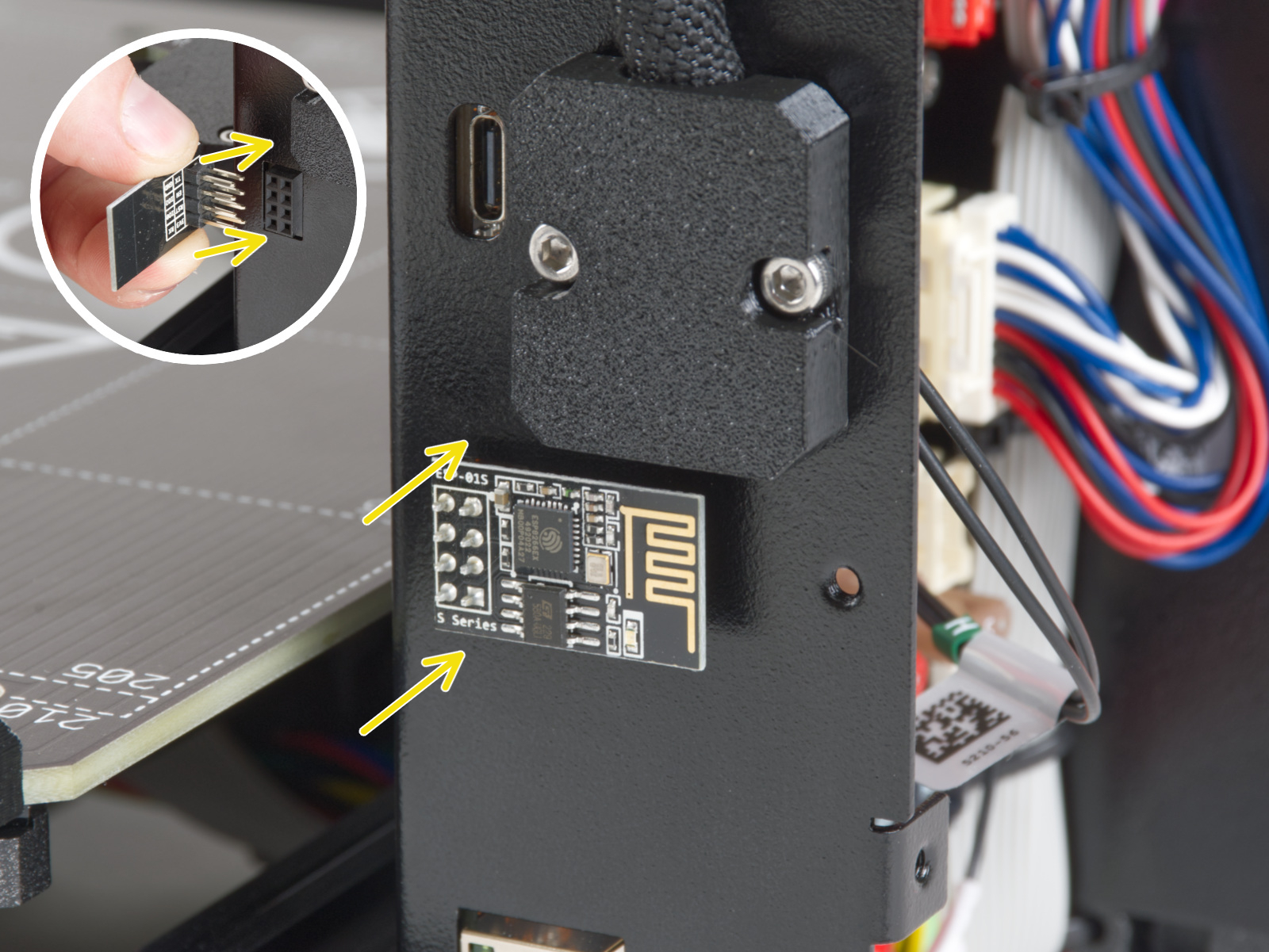 On MK4S and MK3.9S, access the Wi-Fi board by loosening three M3x12 bolts, and disconnecting the board, connected by eight spikes.