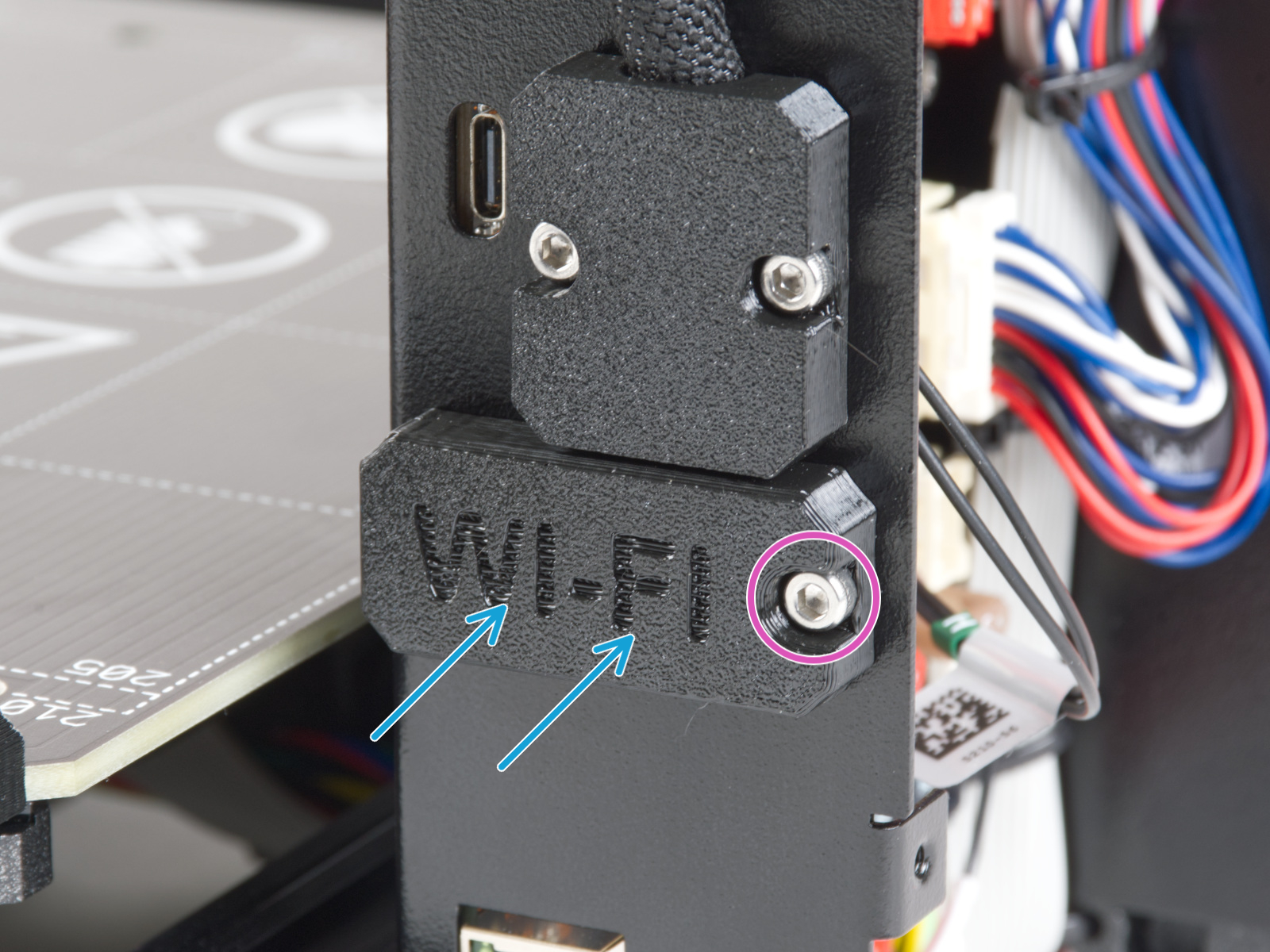 On MK4 and MK3.9, access the Wi-Fi board by loosening one M3x6 bolt, and disconnecting the board, connected by eight spikes.