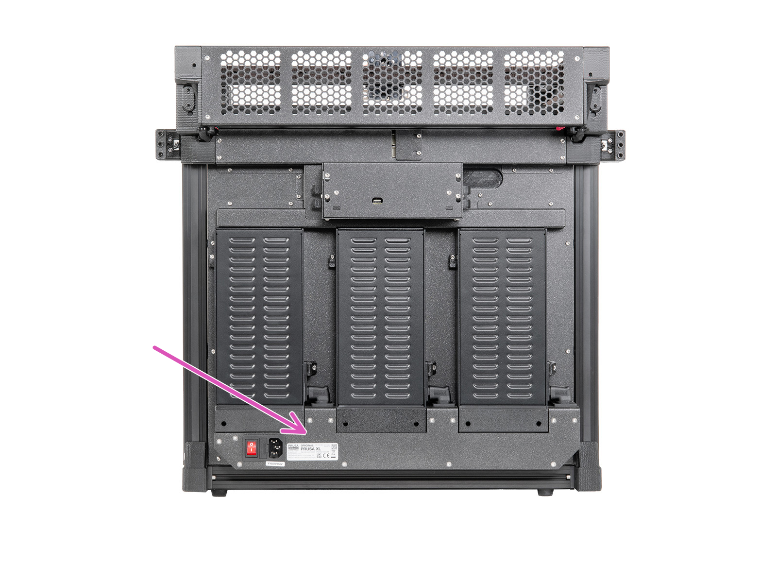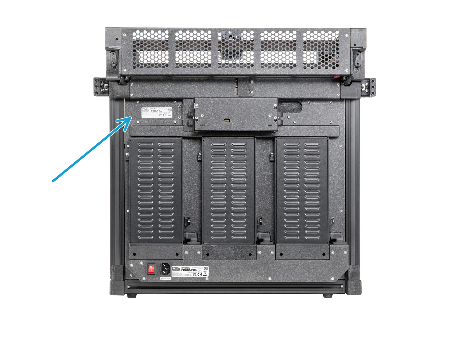 The Original Prusa XL may have one or two silver stickers. Check the whole rear of the printer to locate one or two stickers.