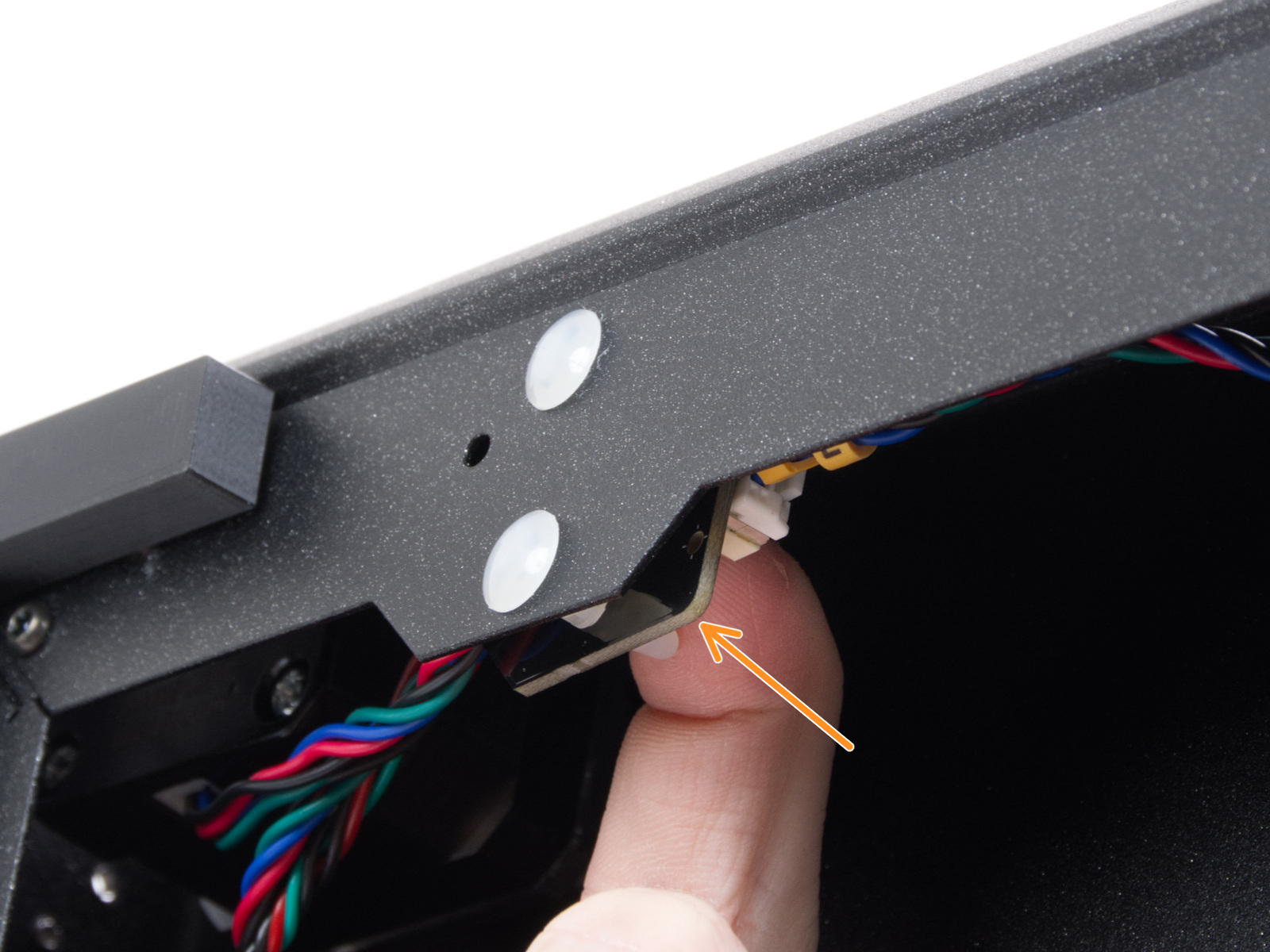 Die Stepper-Splitter-Platine befindet sich unter dem Drucker im Rahmen. Um darauf zuzugreifen, kippen Sie den Drucker bitte auf eine Seite.
