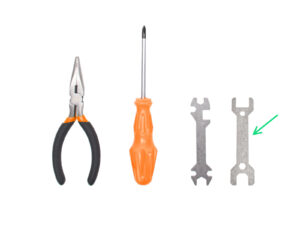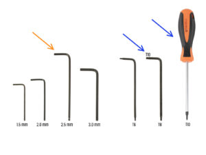 You can find the tools in the box labeled: 2. Electronics & Fasteners.