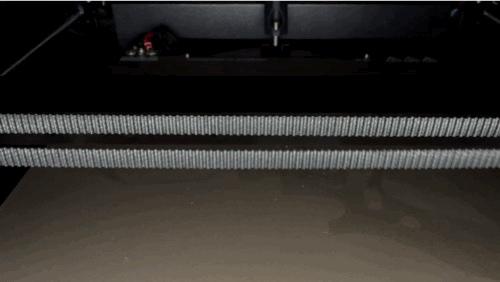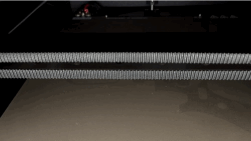 4. Controlla l'allineamento con le cinghie ancora allentate, spingi con attenzione il gantry in avanti. Poiché le cinghie allentate non lo tireranno fino in fondo, potrebbe essere necessario guidarlo a mano. Verifica che non ci siano spazi vuoti su entrambi i lati nella posizione anteriore.