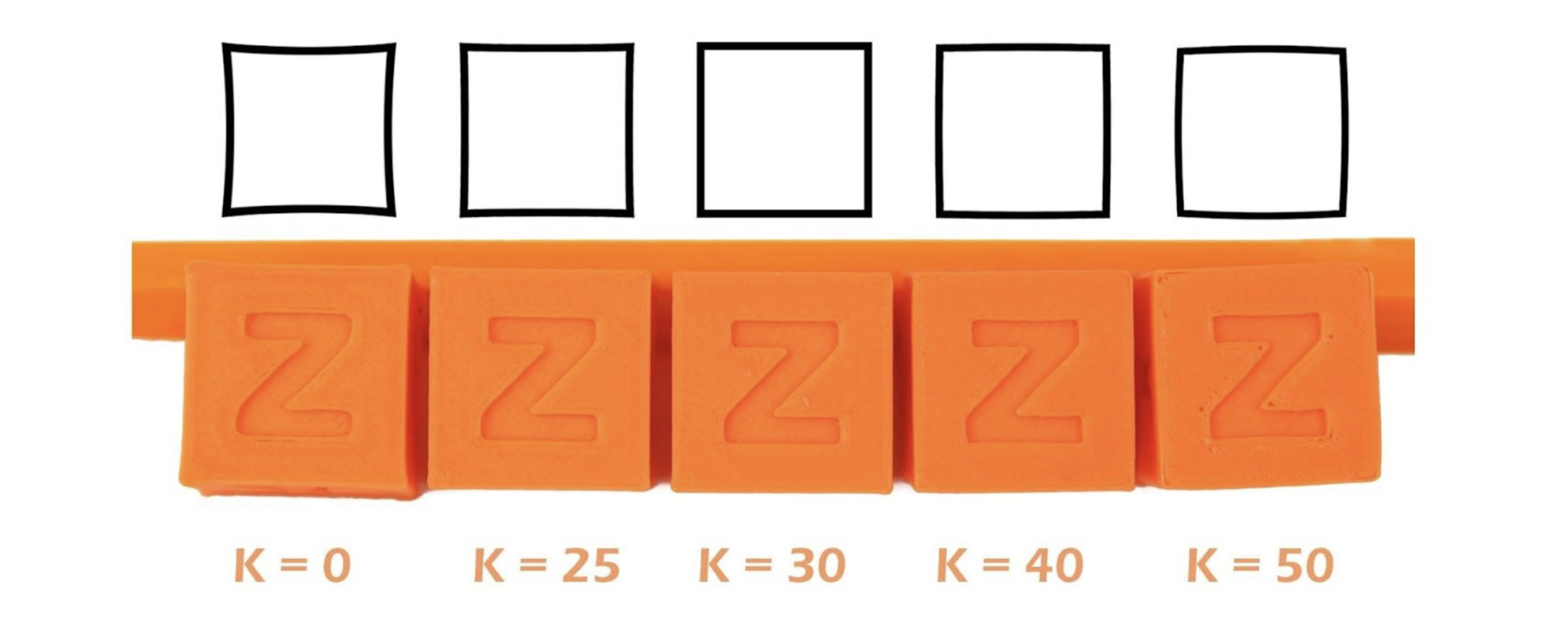 The optimal values we found in our testing are listed in the tables below. These can be implemented into any slicer. Please note that different brands and colors of the same material may require a slightly different K value when printing at extreme speeds, however, our presets should be fine with all of them.