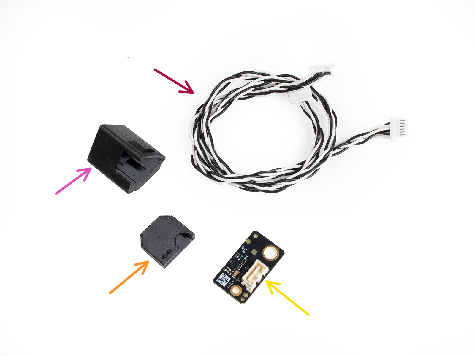 Zespół akcelerometru składa się z małej płytki PCB zamkniętej w drukowanej obudowie, którą podłączasz do drukarki. Pamiętaj, że użycie akcelerometru wymaga częściowego demontażu drukarki.