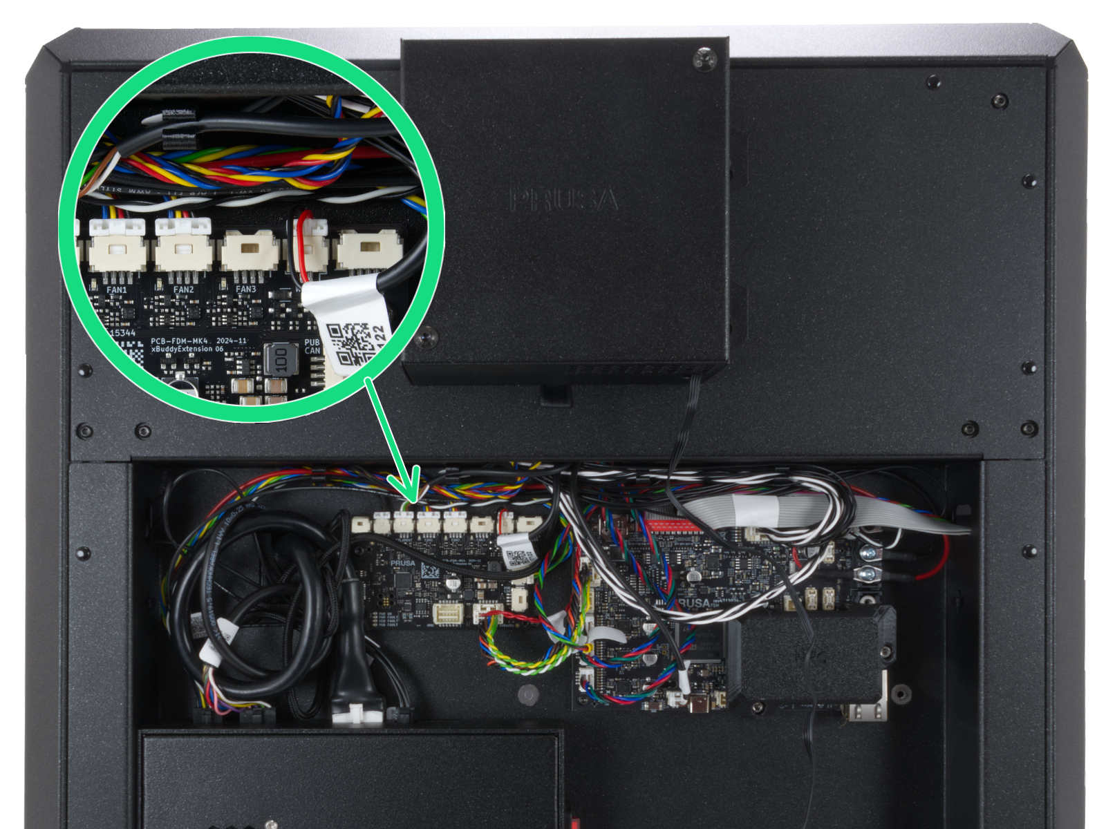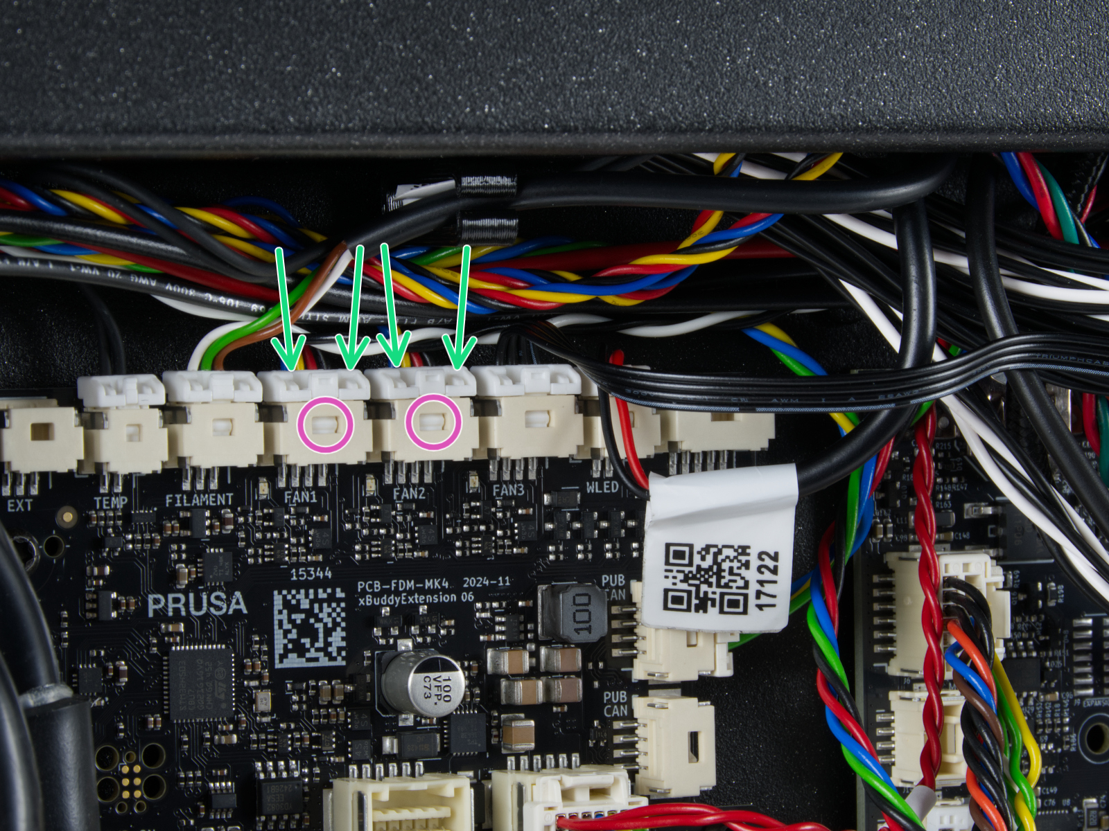 Po zakończeniu kontroli spróbuj przetestować wentylatory z menu drukarki, przechodząc do menu LCD -> Sterowanie -> Kalibracje i testy -> Test wentylatorów.