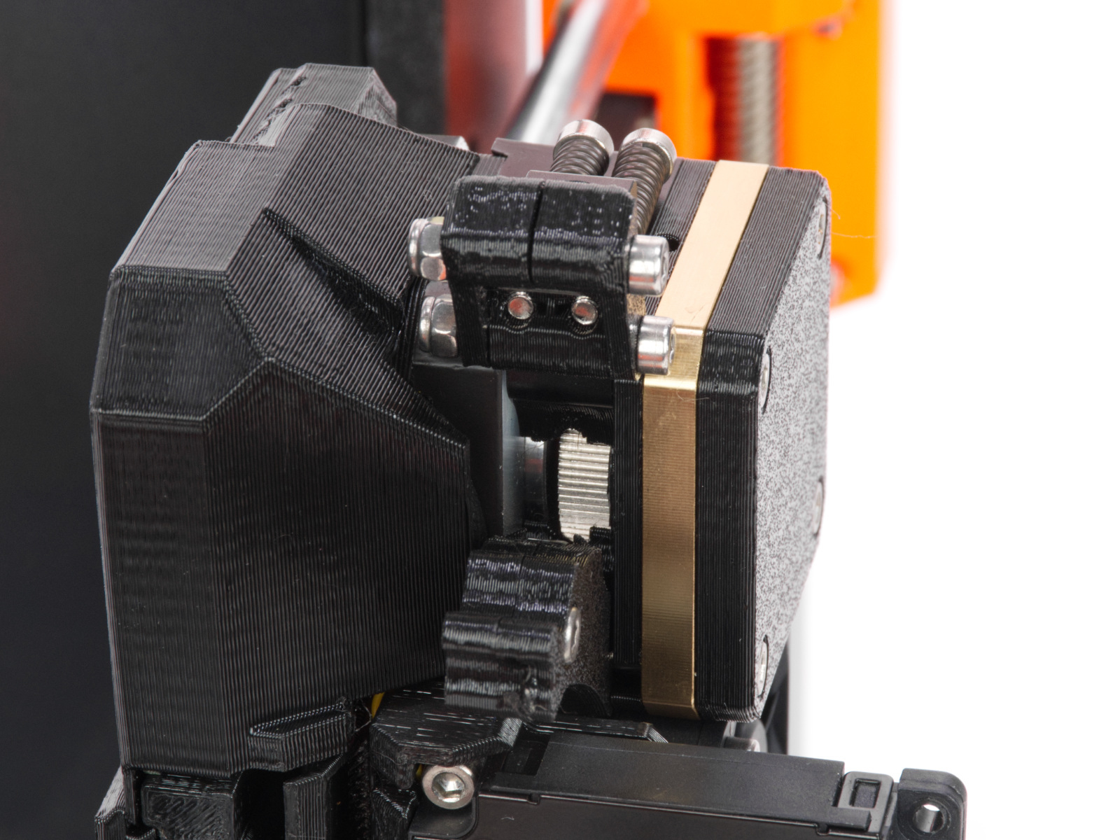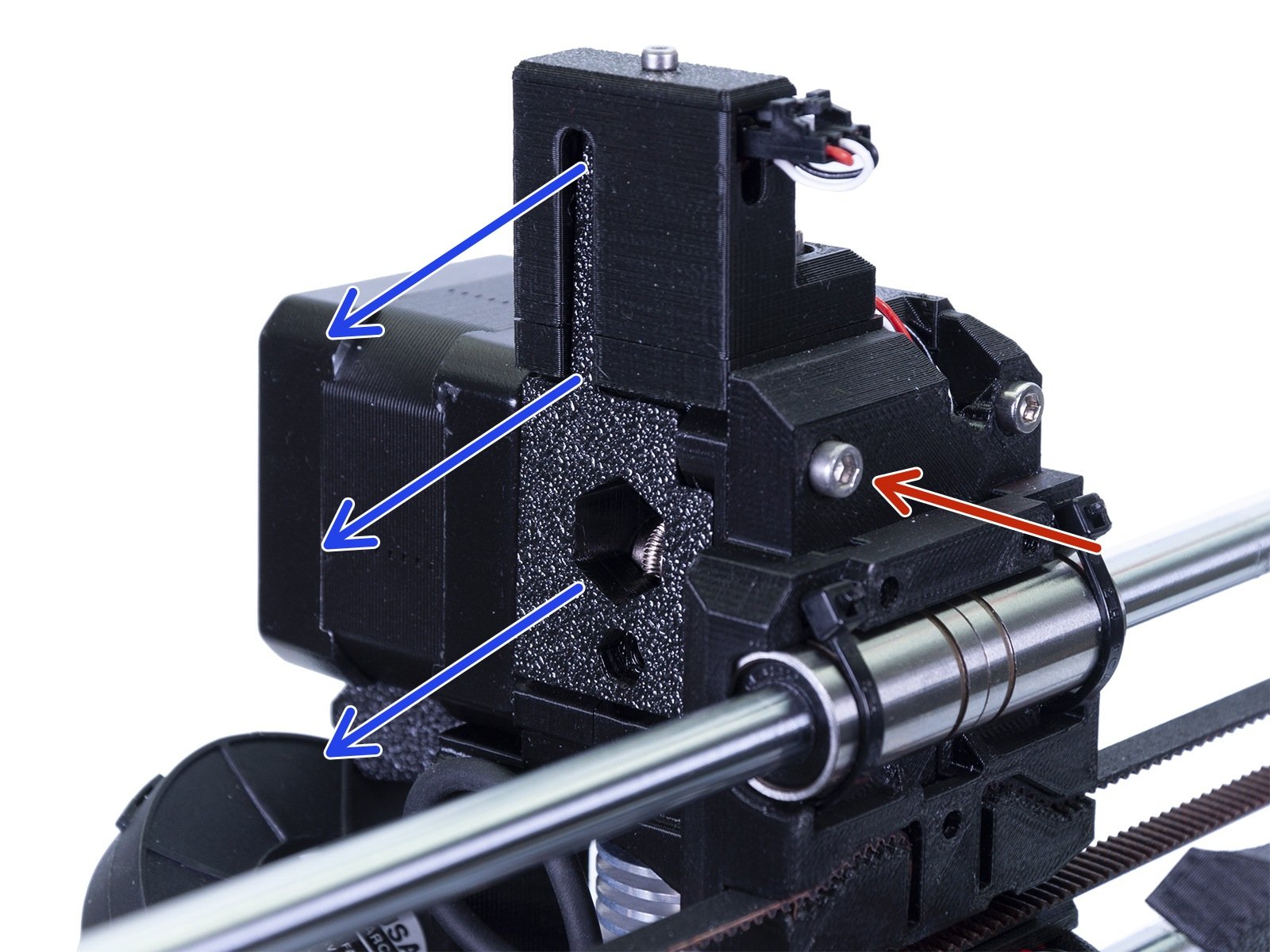 - Otwórz docisk ekstrudera i upewnij się, że w ekstruderze nie ma resztek filamentu blokujących ładowanie nowego.