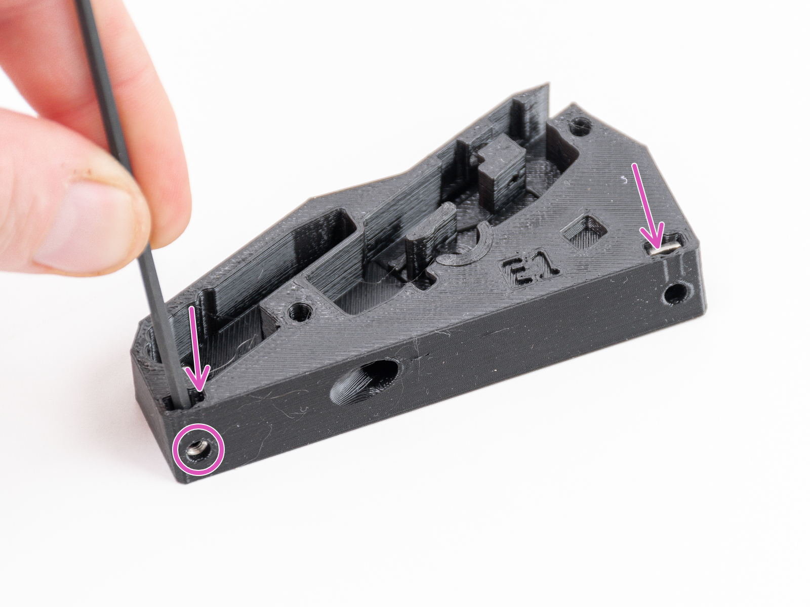- Stosując tę samą procedurę, wsuń i dokręć drugą śrubę M3x10rT.