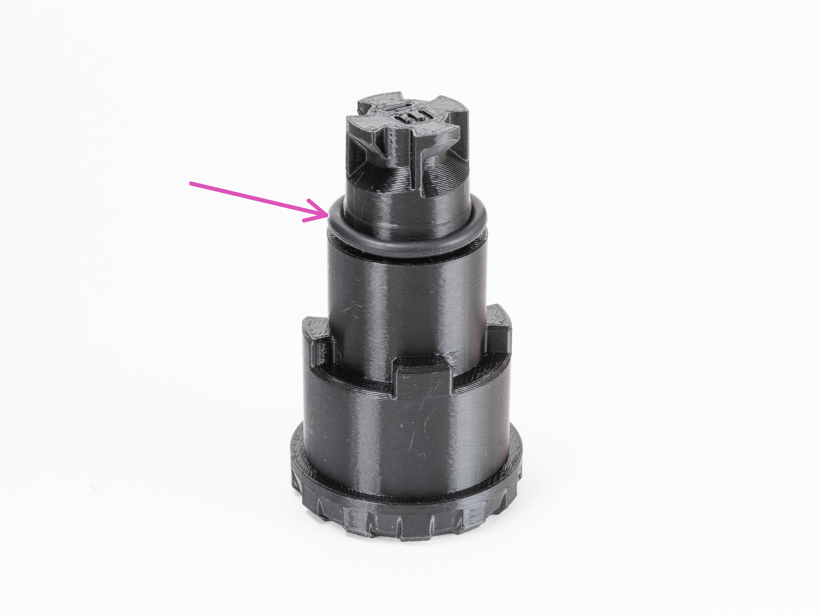 - Wciśnij i zatrzasnij czarną tuleję w nowym korpusie czujnika filamentu.