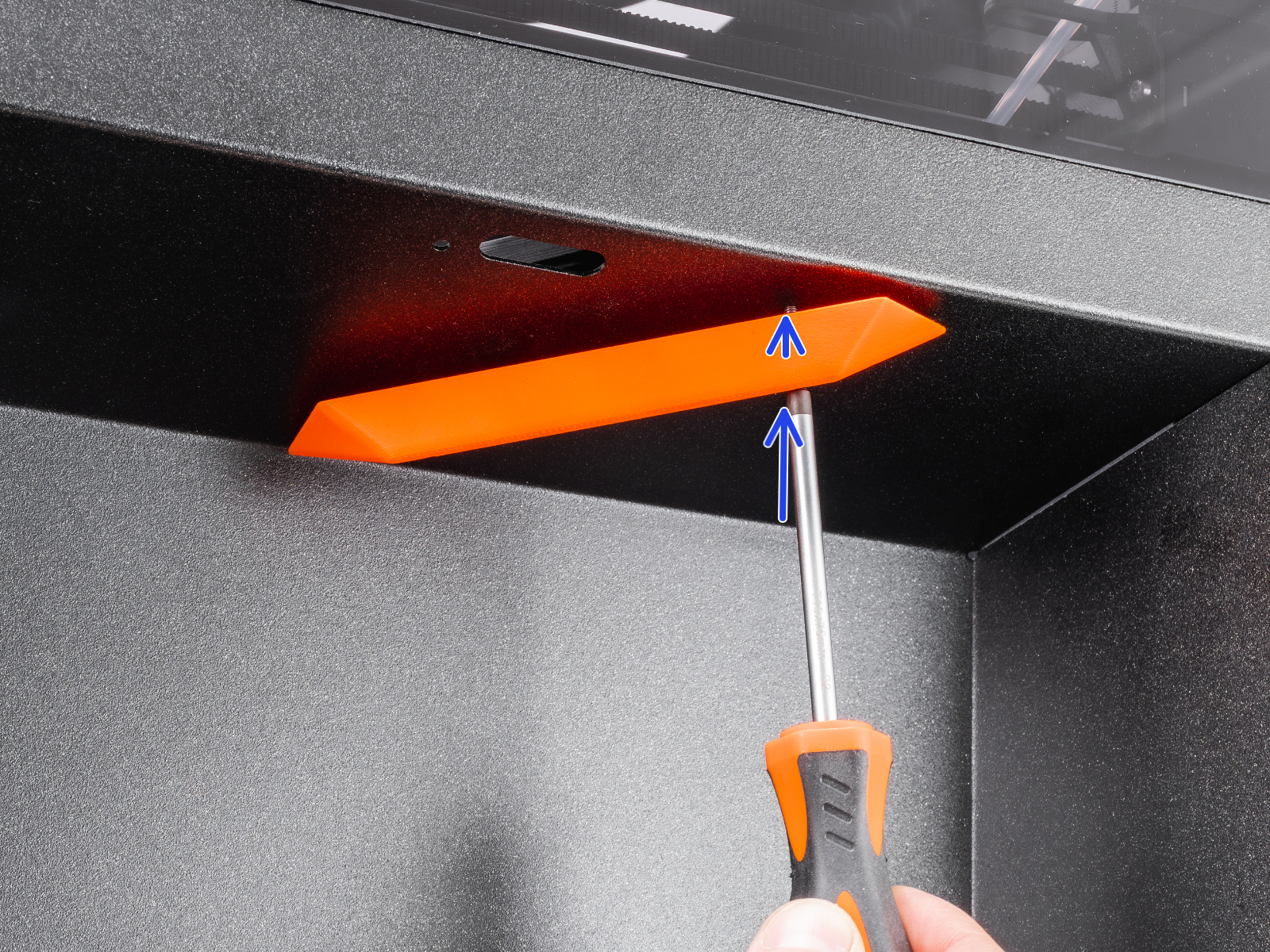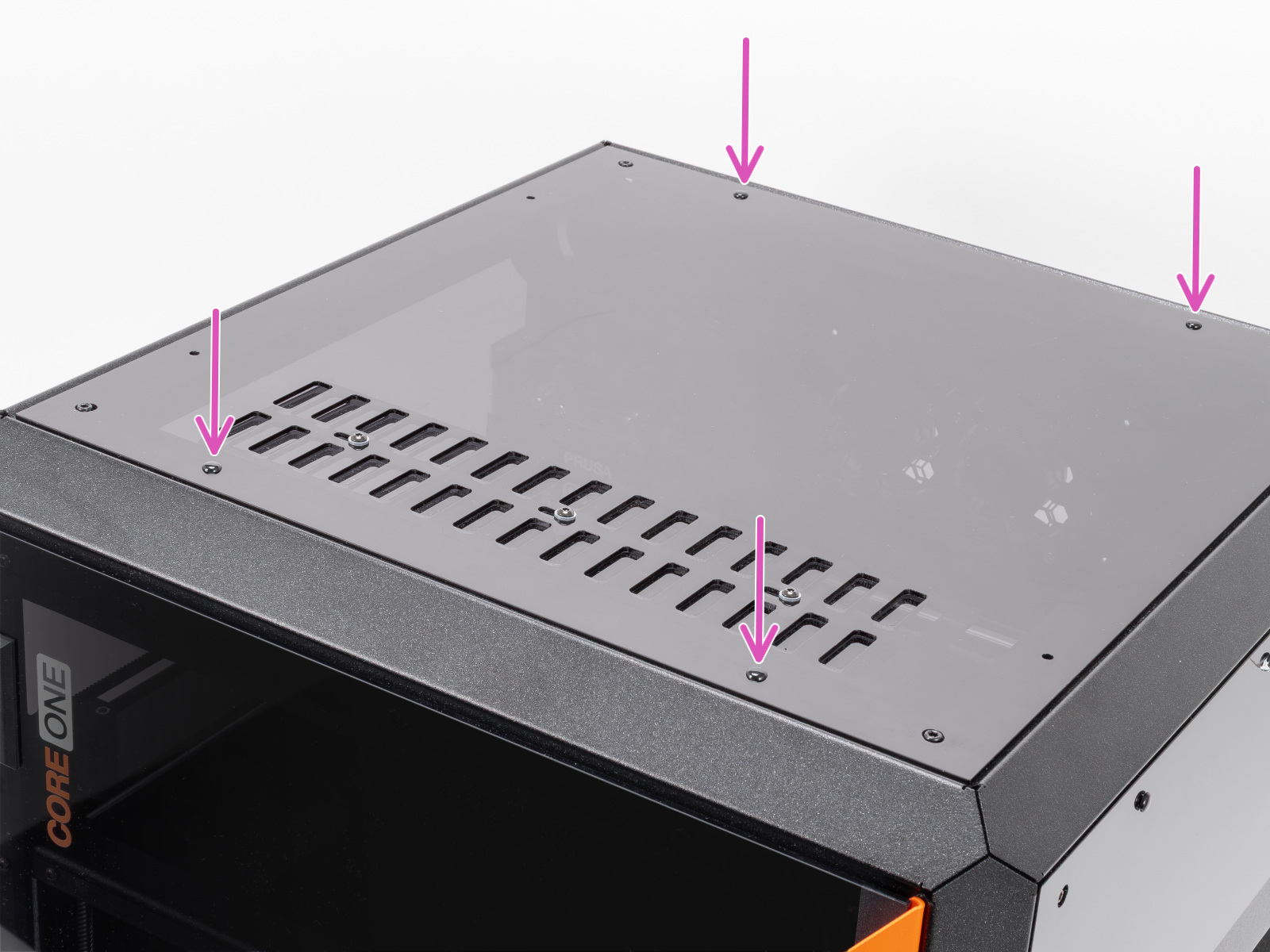 - Aby uzyskać dostęp do Nextrudera od góry, najpierw zdejmij górny panel zgodnie z opisem w tej instrukcji.