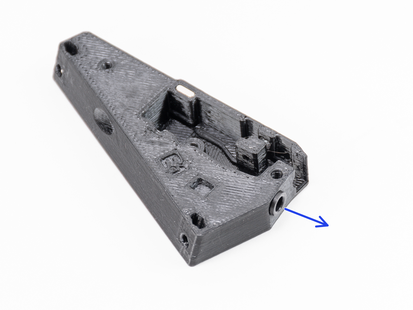 - Wsuń dwie nakrętki kwadratowe M3nS w nowy korpus czujnika [C1+ FILAMENT SENSOR BODY]. Upewnij się, że nakrętki są wciśnięte tak głęboko, jak to możliwe..