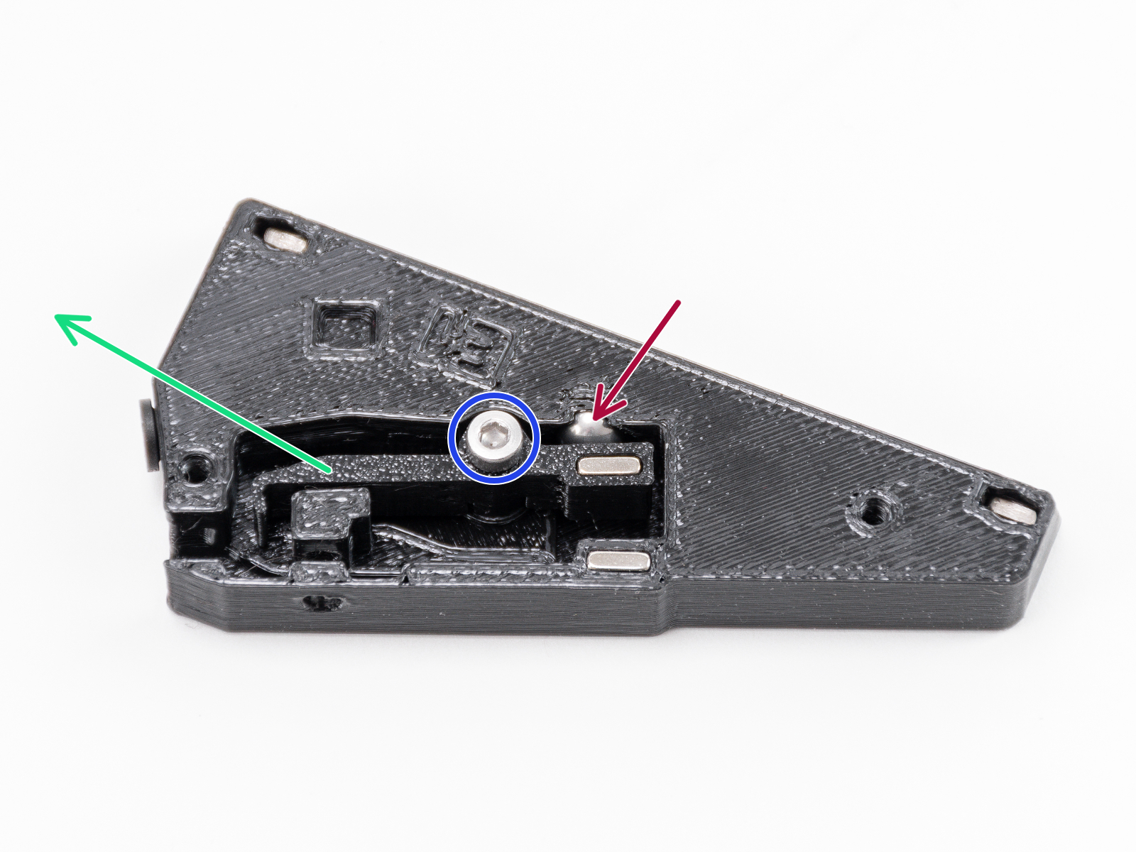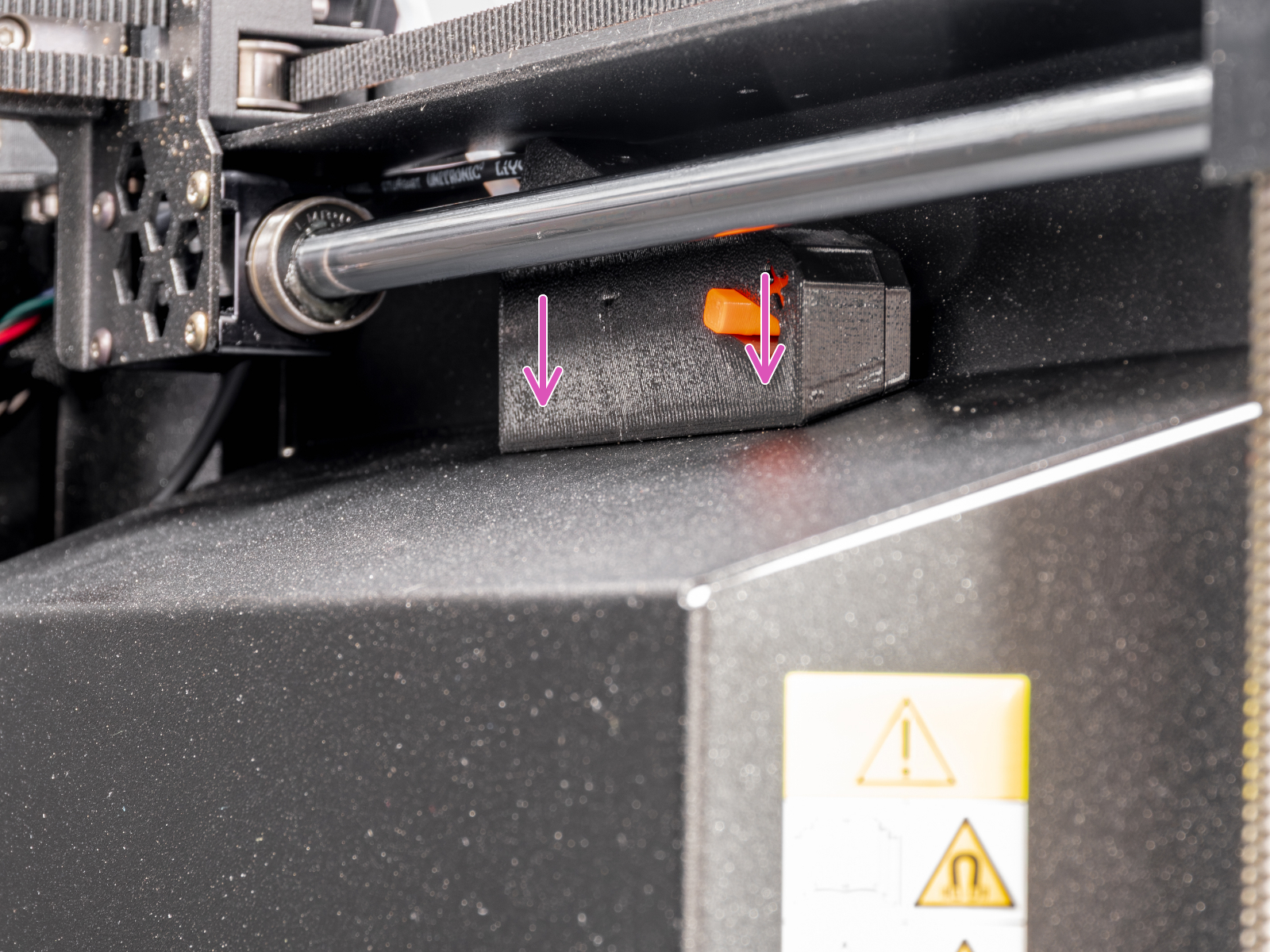 - Wewnątrz drukarki wyrównaj zespół czujnika filamentu względem wystającej śruby M3x10rT i dokręć ją.