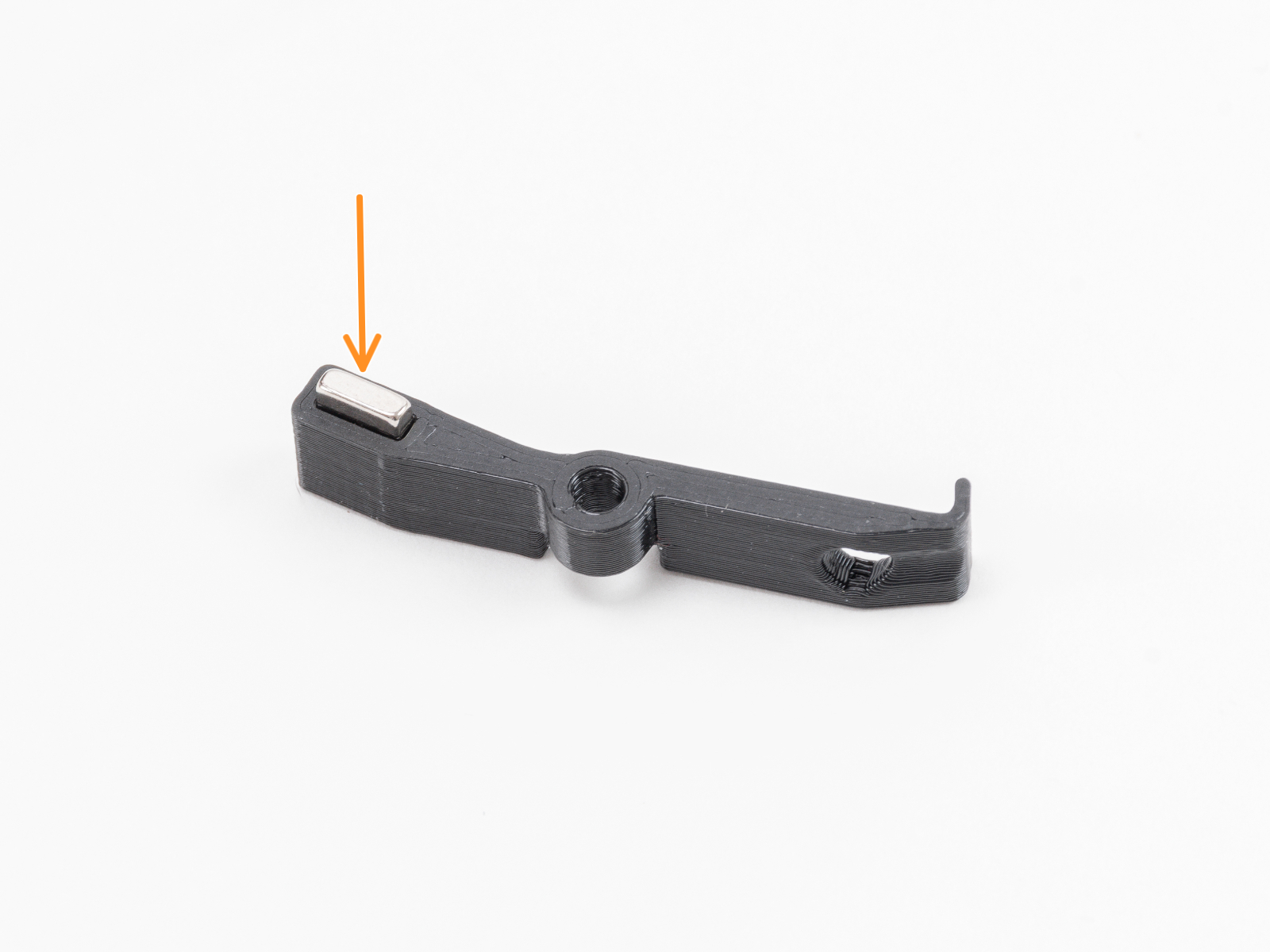 - Wsuń jeden magnes 10x6x2 w nową dźwignę [C1+ FILAMENT SENSOR LEVER].