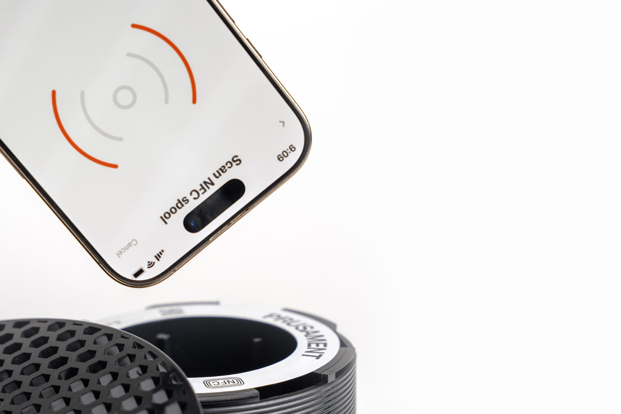 OpenPrintTag jest zapisywalny i jest czymś więcej, niż tylko tagiem zawierającym identyfikator. Można zapisywać na nim inne istotne dane, jak materiał, kolor, kluczowe ustawienia drukowania i pozostała ilość filamentu - wszystko to jest przechowywane bezpośrednio na nim. Twoja drukarka nie potrzebuje Wi-Fi ani łączności z chmurą, aby zidentyfikować szpulę.